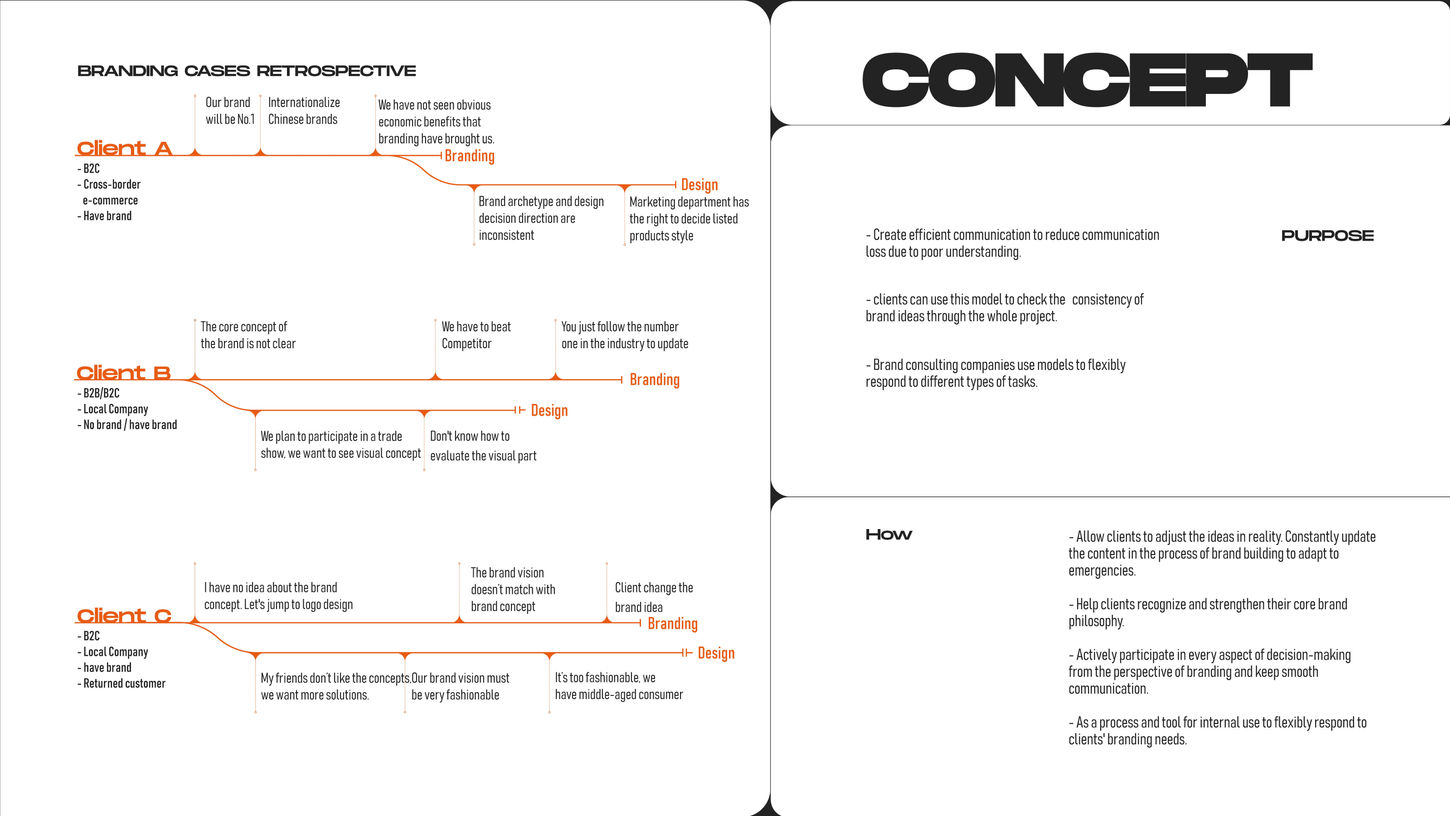 The BCTK project is designed to enhance communication between brand consulting agencies and their clients by providing a specialized communication toolkit. This toolkit aims to synchronize understanding and accelerate project timelines. By applying the Object-Oriented UX (OOUX) design methodology, the project seeks to include a wide range of stakeholders. The toolkit offers different modules customized for various client needs, supporting both online and offline modes of interaction.